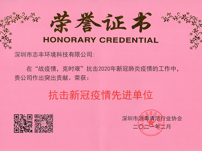 2020年度深圳市消毒清潔行業協會優秀企業單位
